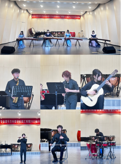 本场音乐会融合了钢琴、单簧管、古典吉他、西洋弦乐、竹笛、二胡、古筝、打击乐多种中西方乐器,共有26名优秀的器乐专业学生参演。作品风格多样,演出精彩纷呈,有充满古典色彩的西方器乐作品,有耳熟能详的经典民族器乐作品,也有充满动感节奏的打击乐组合,整场音乐会学生们以良好的专业素养和饱满的热情完成了各自的舞台技能展示,获得了领导、老师以及企业负责人的高度好评。