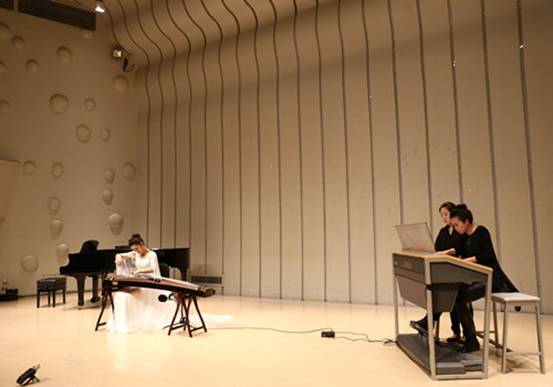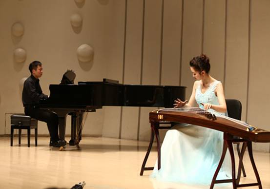 值得一提的是,本场音乐会乐曲《大漠行》的作者西安音乐学院魏军教授也莅临现场聆听,对王雨佳的演奏做出高度评价:“她的技术能力强,音乐表现力、舞台演奏水平非常突出。”相信这是对于王雨佳同学习筝之路上那份执着最好的鼓励与肯定。音乐会最后一首曲目《如是》是今年年初刚刚出版的古筝新作。当晚演出的版本,是由我院青年双排键演奏家张婷婷老师将交响乐队版改编为古筝与双排键协奏的全国首演。在王雨佳与导师薛莲副教授的精心准备下,音乐会取得圆满成功。