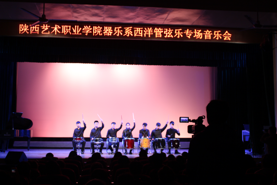 音乐会以双排键独奏《荒野七侠》震撼开场,瞬间点燃了现场的气氛;紧接着一首独具韵味的钢琴曲《皮黄》在演奏者婉转、流畅如歌的旋律中映入耳帘,作品中的旋律、和声、节奏无不蕴含着浓厚的戏曲风格;由王育和金远老师与学生共同演绎的萨克斯四重奏《培尔金特》仿佛在给观众诉说着一段故事;马林巴独奏《降A大调练习曲》、钢琴独奏《幻想舞曲》、《b小调谐谑曲》、吉它独奏The loner》等极具特色的曲目,完美展示了器乐系教学成果。音乐会在节奏明快,积极向上,特别强调团队意识和拼搏精神的重奏《行进打击乐》中落下帷幕。