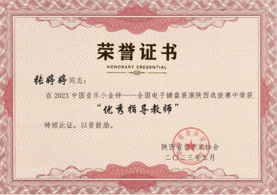 近日陕西省音乐家协会公布了2023年中国音乐小金钟——第三届全国电子键盘展演陕西选拔赛获奖名单。音乐学院现代流行音乐专业2021级学生郝芮、2022级学生曲海菡荣获专业组“陕西音乐小金钟电子键盘新星”,推荐参加全国展演,张婷婷老师获得“优秀指导教师”奖。