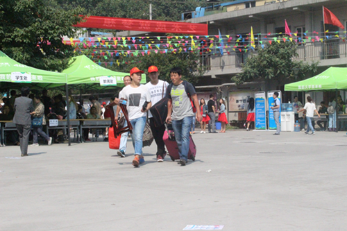 器乐系的小红帽志愿者们,也用自己的热情,迎接每位新生的到来。他们忙碌的身影,在校园内形成了一道亮丽的风景线。