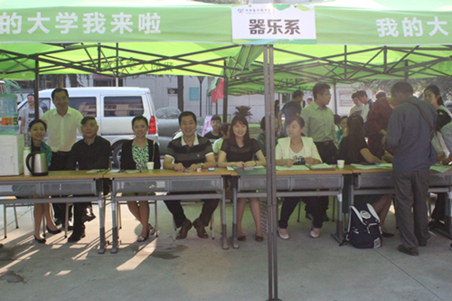 2015年9月15日,在领导、老师和志愿者的配合下,陕西艺术职业学院器乐系第一天的迎新生工作顺利完成。器乐系高度重视这次迎新工作,特别是将全系老师按照报名咨询等环节,分散安排在报名服务咨询点、家长休息服务点、学生公寓服务点等各个站点,为新生和家长提供一站式咨询服务。