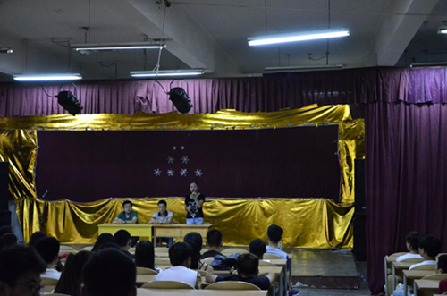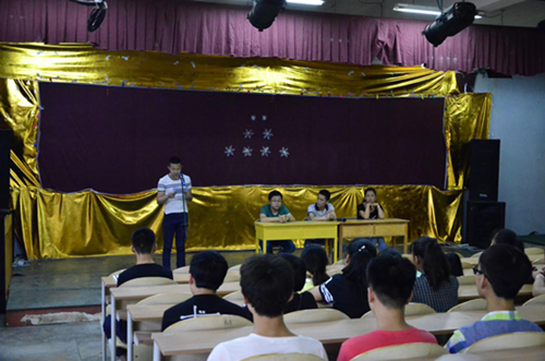 2015年6月23日晚,陕西艺术职业学院学生处与器乐系共同组织召开了学生会议。会上,由参加2015年全国职业院校技能大赛获一等奖、二等奖的我院器乐系2013级大班李明航、杨蕾两位学生现场做主题报告,与同学们共同分享获奖的感受与经验。会议由器乐系专业教师王育主持。参加会议的有学生处、器乐系部分教师、鱼化校区器乐系全体学生。