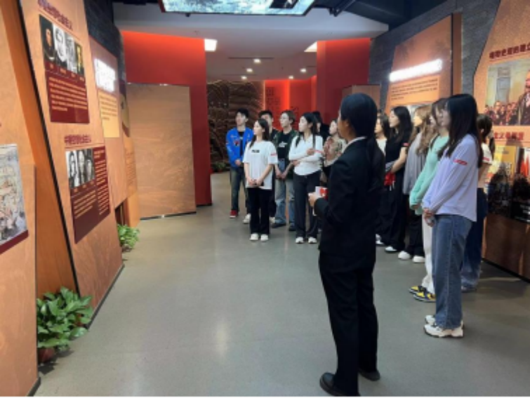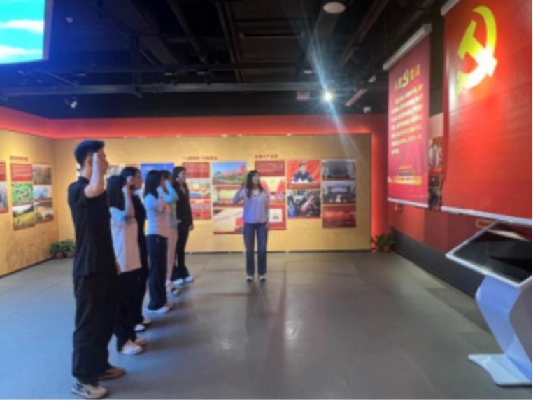 在讲解员的带领下,同学们参观了红旗•百年教育实践基地,从正道沧桑到峥嵘岁月,再从开国奠基,到波澜壮阔,再到最后的民族复兴,通过重温党的百年奋斗历程和重大成就,同学们深刻认识到共产党员所肩负的历史责任和使命。随后,王婷老师带领支部预备党员重温入党誓词,在铿锵有力的宣誓中,进一步坚定了预备党员们的理想信念和为共产主义事业奋斗终生的决心。